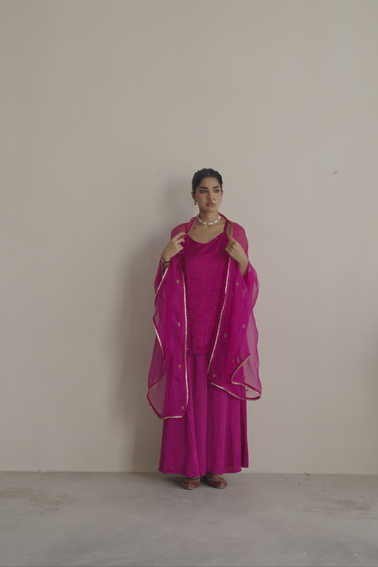 Aubergine Arzin Kurta set with Sitara Odhani