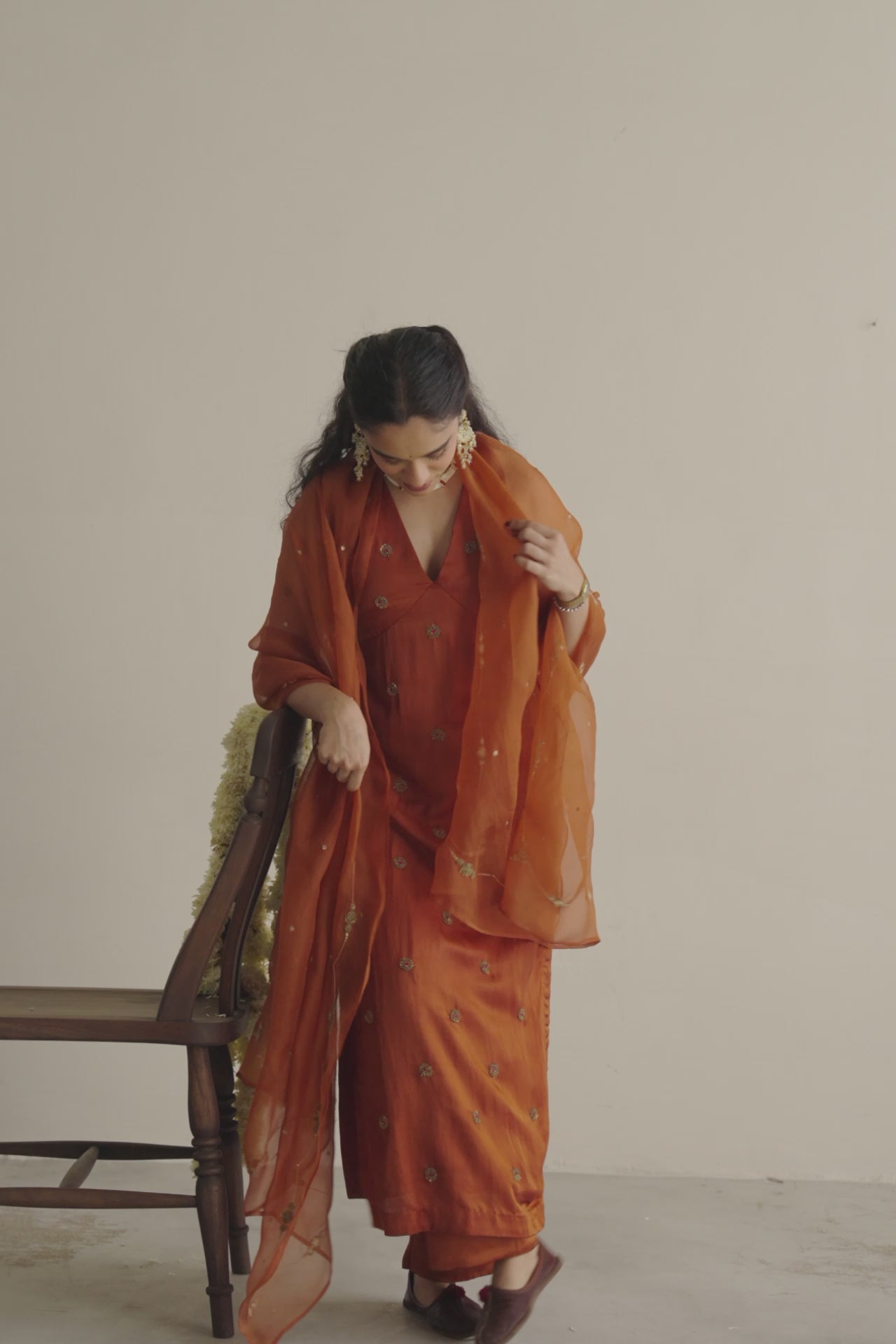Rust Noorani Kurta with Neelam Odhani