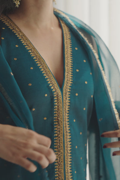 Teal Saanjh Gharara with Ambi Odhani